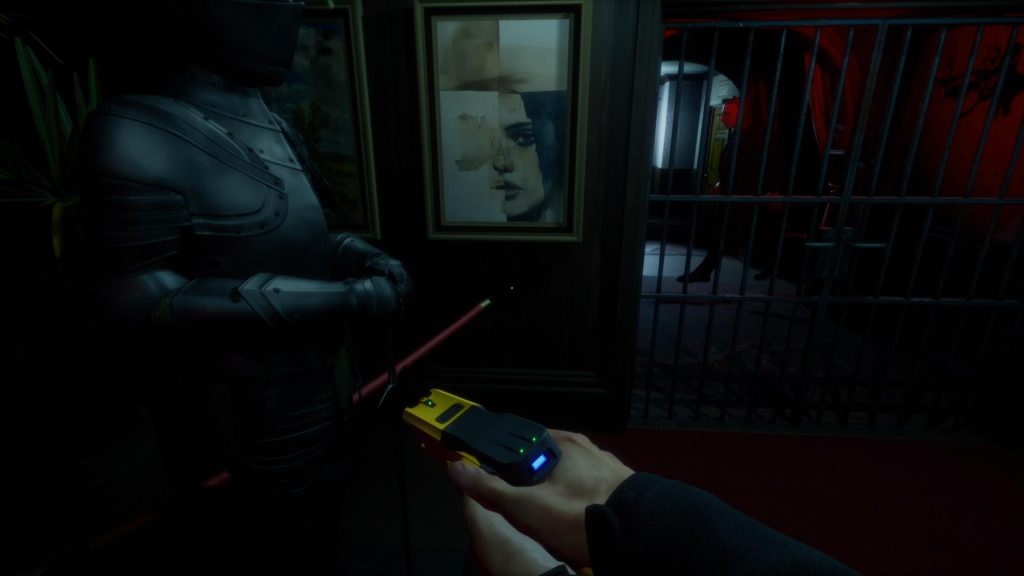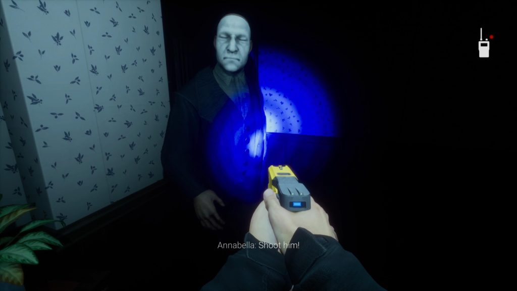 Gameplay is where the game finds its rhythm. Charles’ main tool is his taser, which acts as a defensive weapon, a puzzle-solving instrument, and a source of ultraviolet light for your forensic work. Square equips it, L2 aims, R2 fires, and R1 activates the blacklight used to spot blood evidence or simply help you navigate dark hallways. The taser also interacts with fuse boxes, which open locked doors when shot, which I found to be an elegant way of blending investigative tasks with progression. Ammo for the taser is scattered throughout the estate and gradually respawns where you originally found it, ensuring the player rarely feels truly helpless. The stalker that chases you throughout the game can be stunned briefly but never put down for good, creating a consistent push-and-pull between caution, speed, and tactical movement.