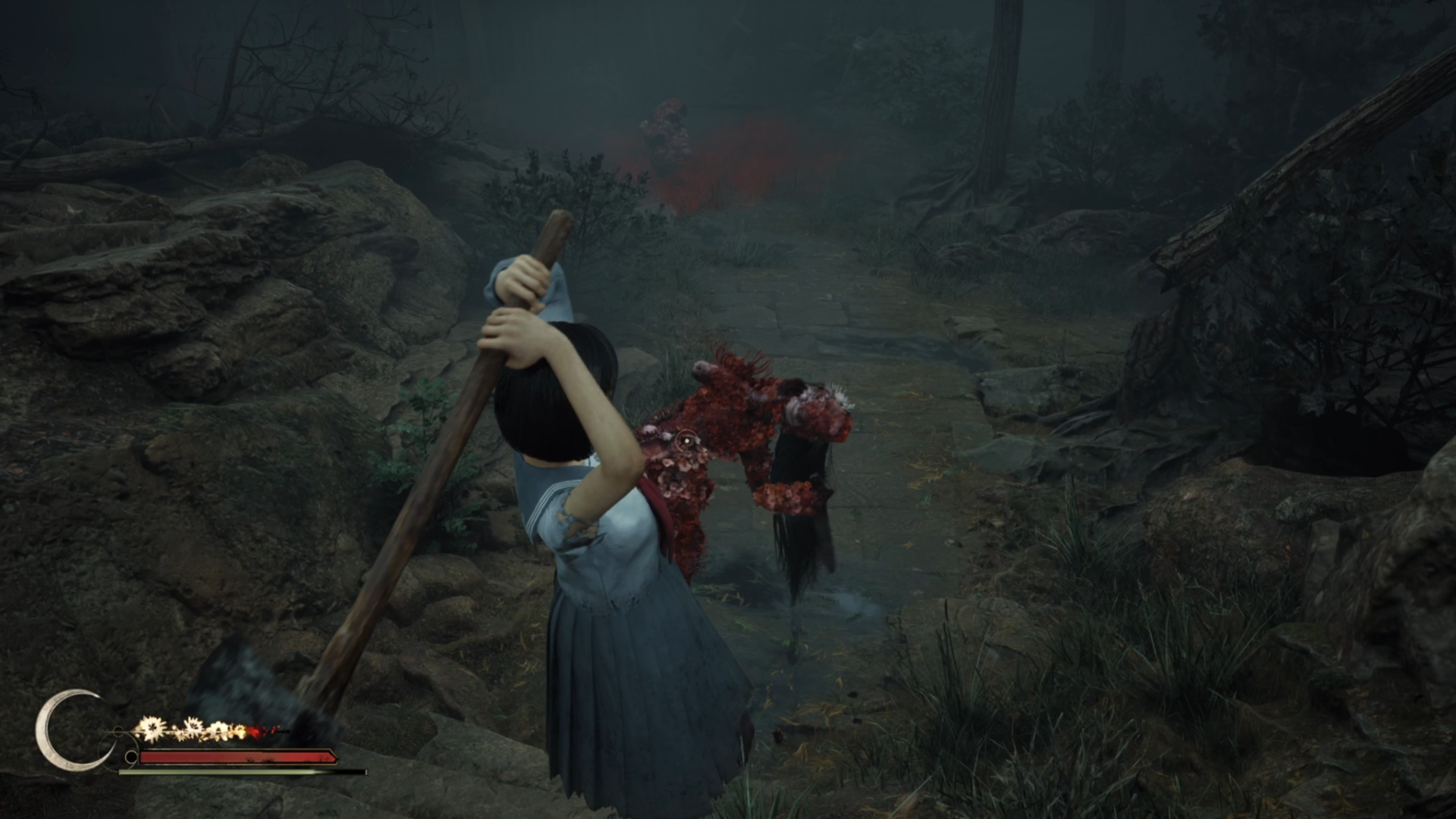 Combat is the most divisive change and will for sure split the fanbase. Silent Hill f shifts firmly into melee-focused action, with stamina management, dodge mechanics, and a sanity meter that adds layers of strategy. Weapons range from knives to axes to baseball bats, each with distinct light and heavy attacks. They degrade with use, forcing you to repair them with scarce toolkits or risk losing them entirely. This fragility makes every swing a decision. Do you waste durability on minor enemies, or save your weapon for the grotesque monstrosities lurking deeper in the fog? Choices like these are what makes the game so compelling to trudge through.