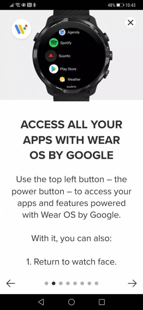 Suunto 7 is designed and tested in Finland with the quality that Suunto is known for. Shock, water, and dirtproof, the watch works in rain, mud, or snow. It has physical buttons so you can use it with gloves on and it’s extremely bright high-resolution touch screen is protected with scratch-resistant Gorilla® Glass. Suunto 7’s battery will give you a full day of smartwatch use and still have enough juice left for your daily workout. Alternatively, it can provide up to 48 hours of smartwatch use or up to 12 hours in GPS tracking mode.* - The watch gets better everyday
