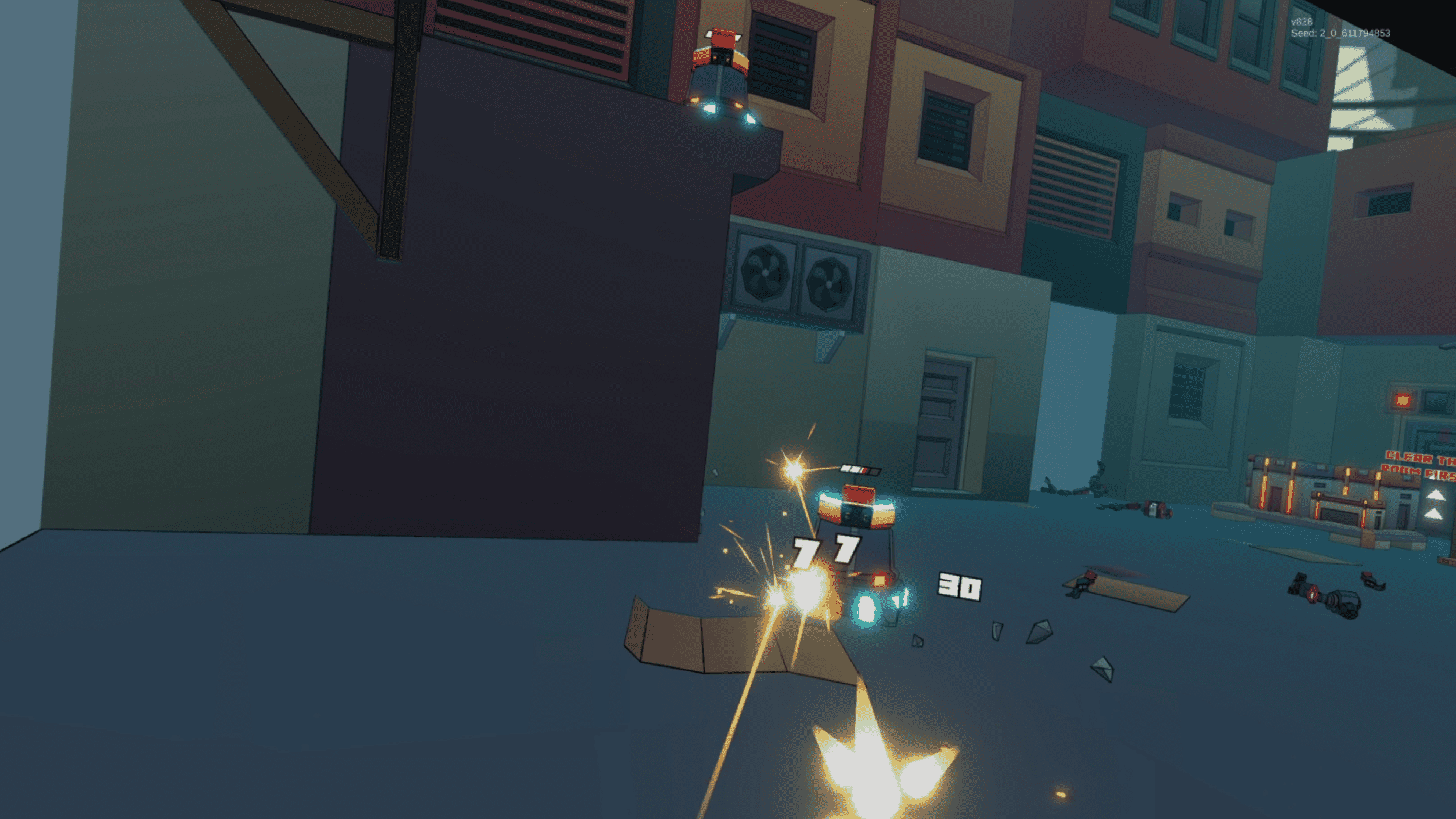 The procedural generation does ensure variety, though not always depth. Mines, slums, industrial corridors, and a lightly “modern city” area rotate in, but the feel of most early floors blends together. Enemies are randomized and rooms often shift in size or structure, but the game rarely asks you to think tactically. That simplicity cuts both ways. Sweet Surrender is approachable and easy to pick up, but it’s also noticeably easier than many of its peers. Once you assemble a decent set of power chips or find a strong weapon early, you can blast through rooms in seconds. Even late-game fights often evaporate before the tension has a chance to build.