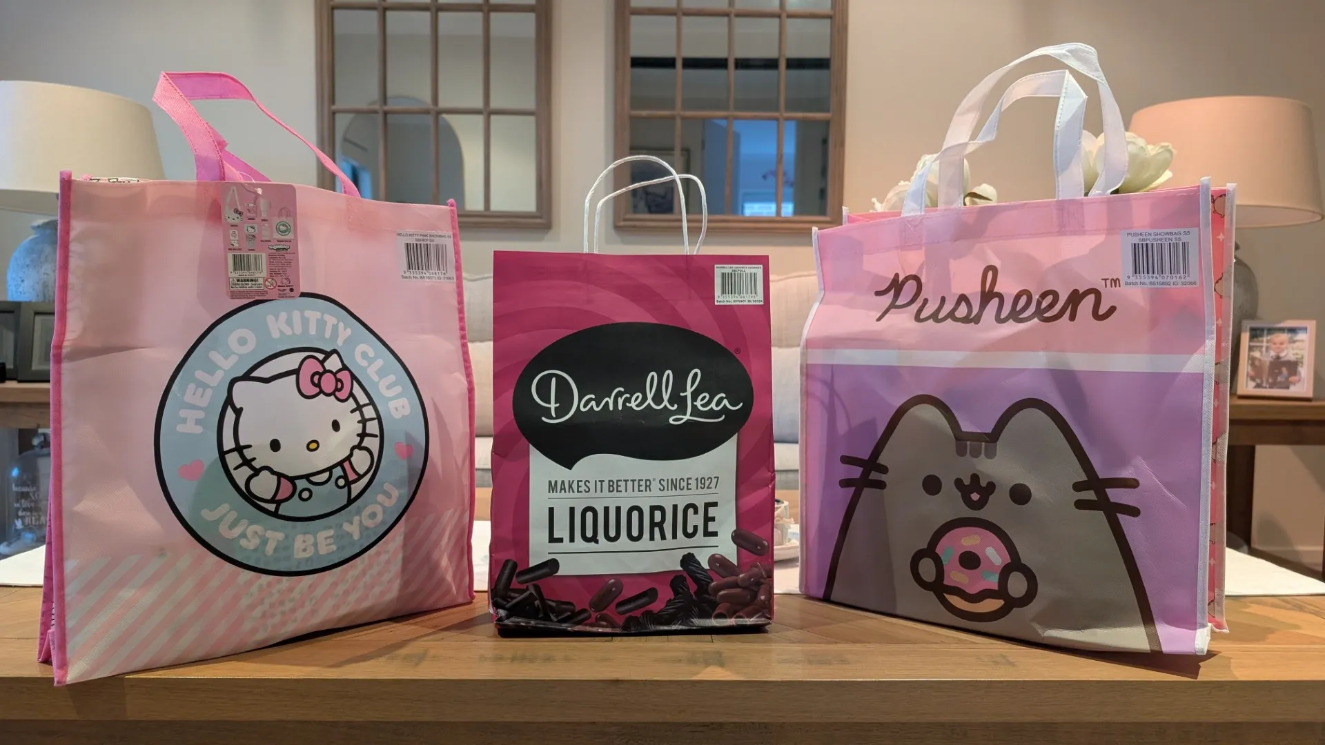 Thanks to Showbags.com.au we were given an exclusive early look at three bags in this year’s lineup with Pusheen, Hello Kitty and the Darrell Lea Licorice Showbag.