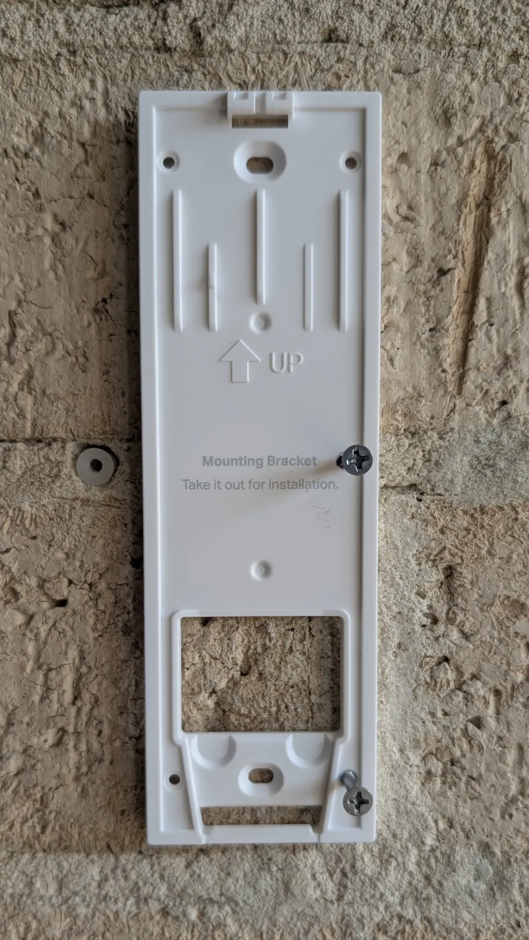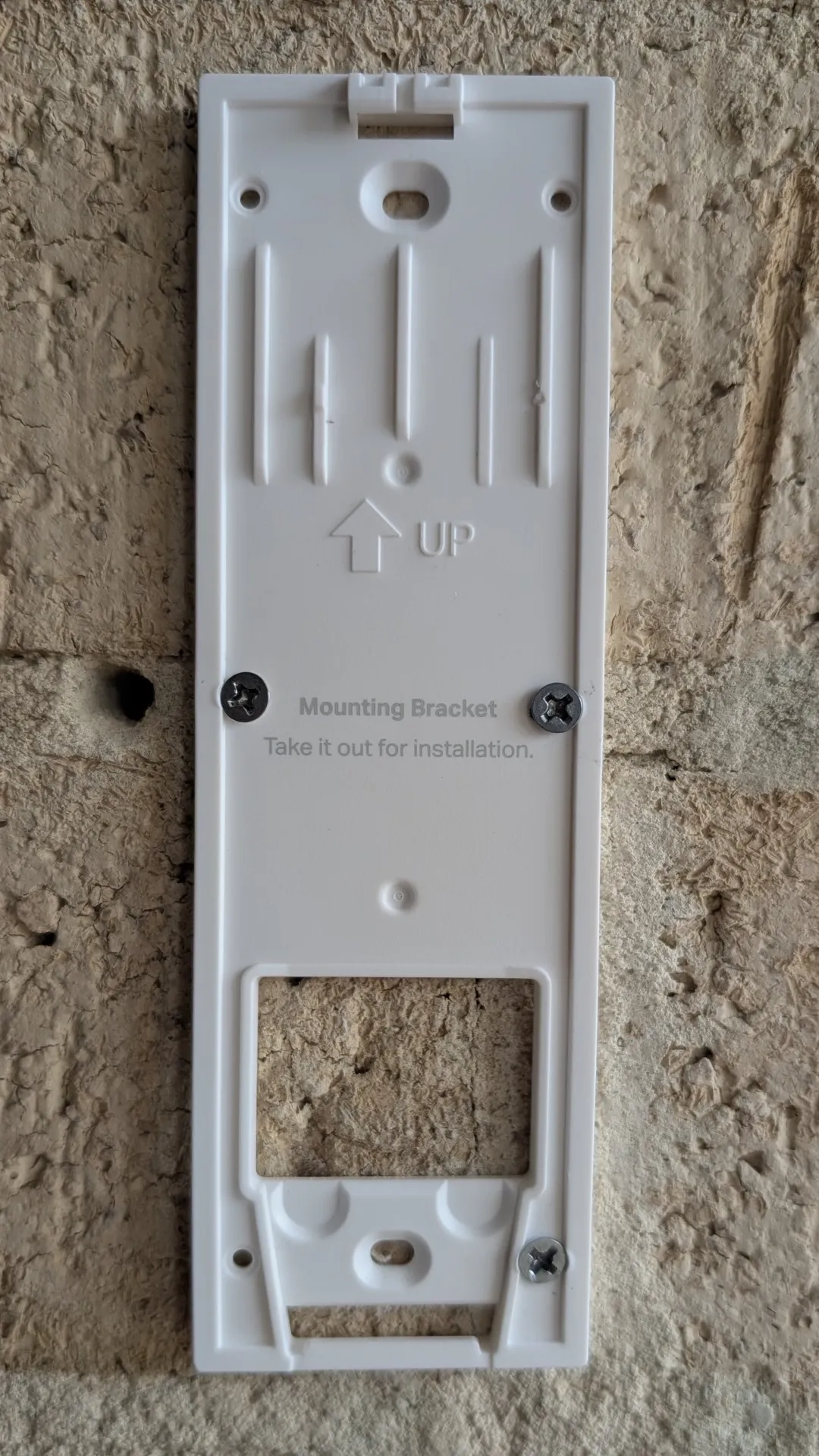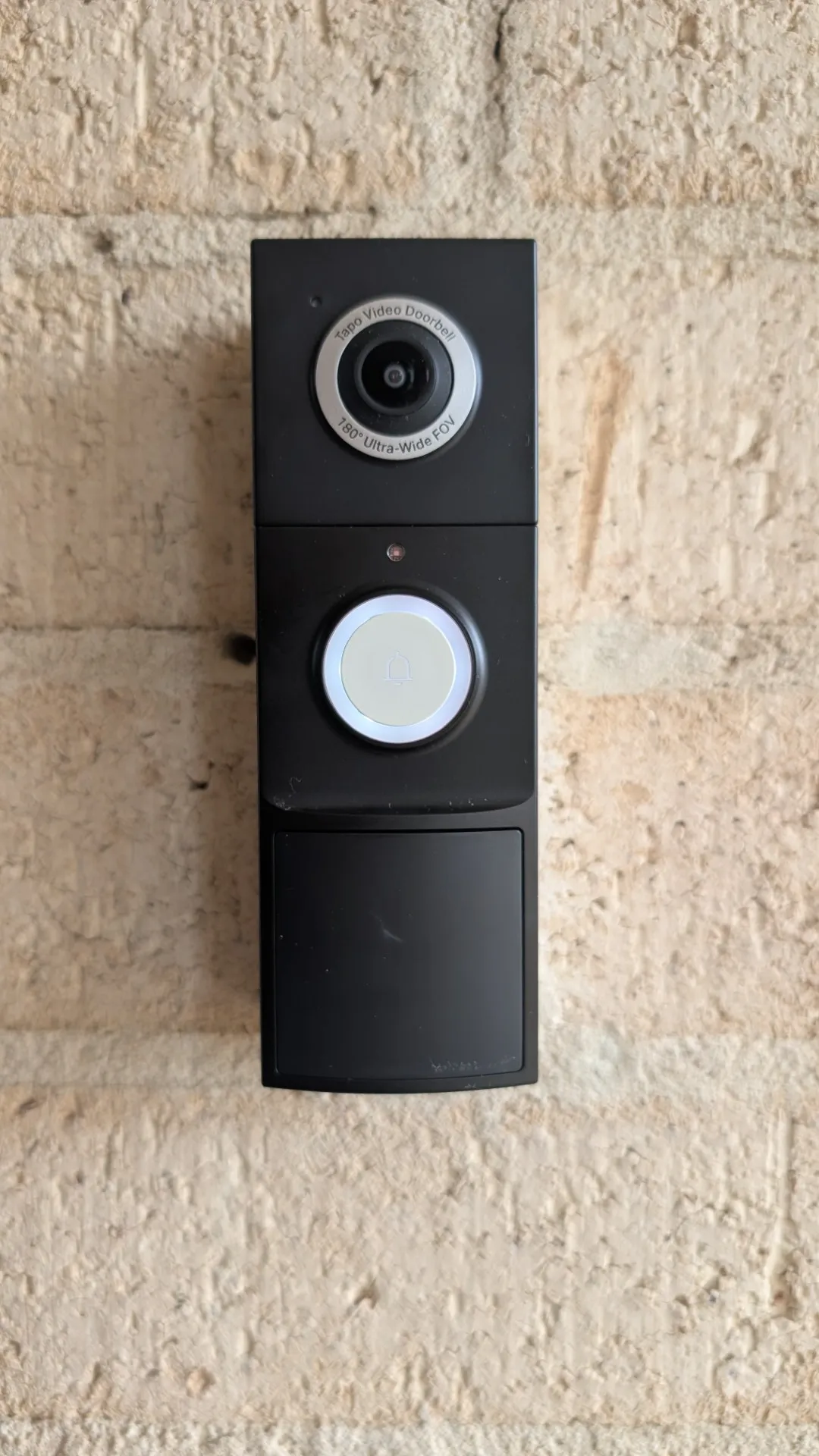 The setup process for the Tapo D235 is straightforward, with Tapo including everything needed for either a wired installation or the battery‑powered option, which is the route we chose. If you go with the battery setup, the doorbell needs an initial USB‑C charge that can take up to six hours. As I already had a Ring Video Doorbell installed, I removed it (sorry Amazon) to make way for the D235, though only two of the existing holes lined up. To make the mount sturdier than relying on just two screws, I added an anchor into the mortar, bringing the total to three—still short of the recommended four, but preferable to drilling into brick, which can’t be undone. Once the mounting template was in place, I attached the doorbell by pushing in the bottom first and then the top until it clicked securely. The D235 includes a release pin for removal and features an anti‑theft alarm and as you can see, it now sits neatly installed on our brick wall near the front door.