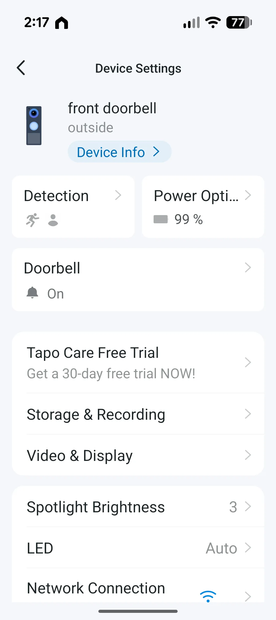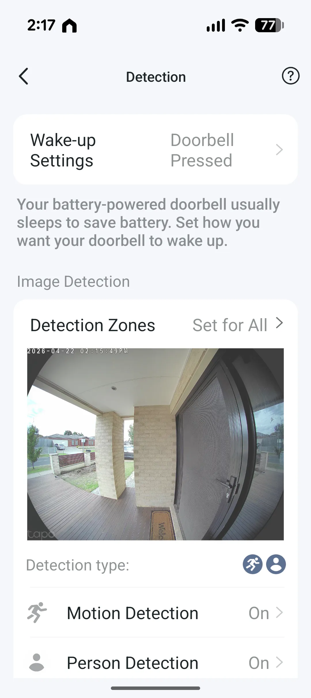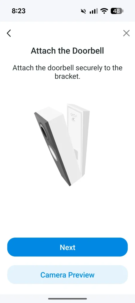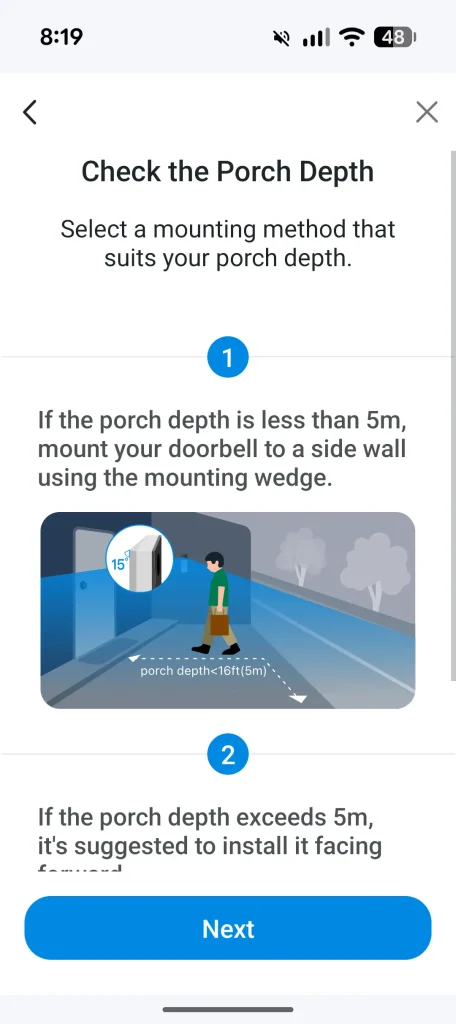 The placement of the D235 followed a quick run through the setup wizard and because I already use Tapo products, it was simply a matter of opening the app, selecting Add Device and choosing the video doorbell. The wizard walks you through connecting both the D235 and the powered chime (sold separately by Ring) to your Wi‑Fi network and within a few minutes everything was paired and ready. Once the doorbell was securely installed and the chime linked, I jumped into the app to explore the features.