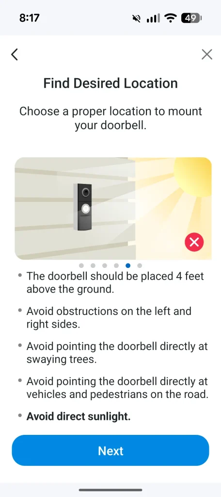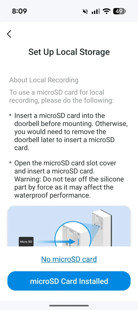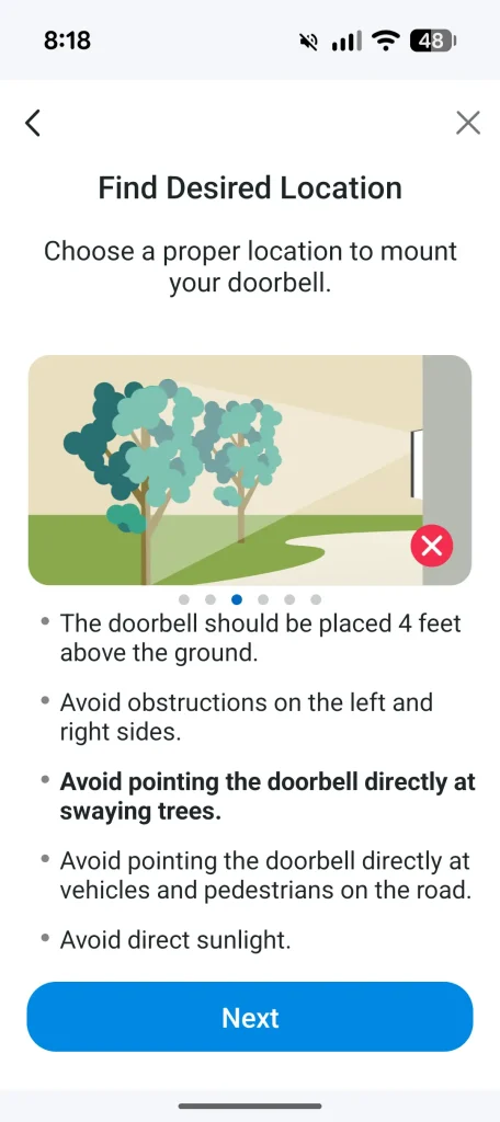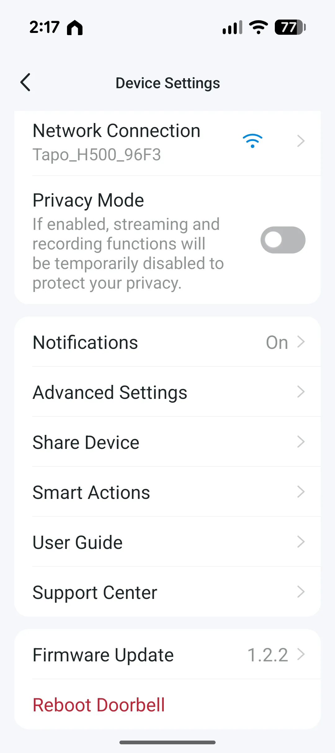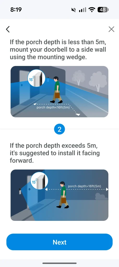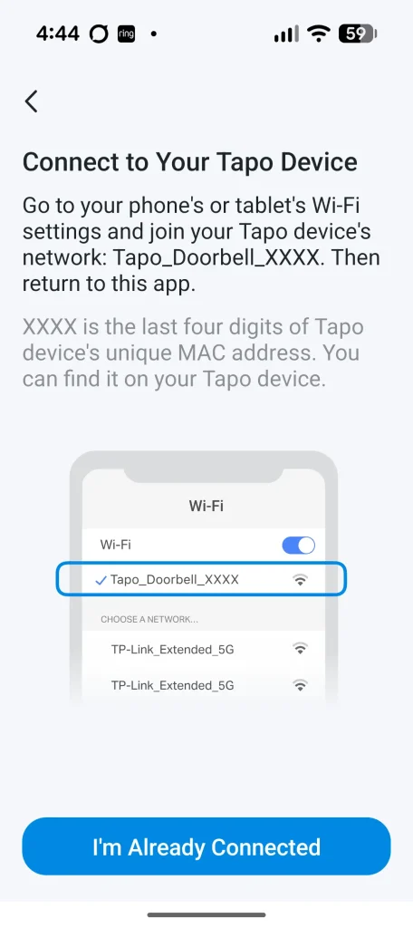 The placement of the D235 followed a quick run through the setup wizard and because I already use Tapo products, it was simply a matter of opening the app, selecting Add Device and choosing the video doorbell. The wizard walks you through connecting both the D235 and the powered chime (sold separately by Ring) to your Wi‑Fi network and within a few minutes everything was paired and ready. Once the doorbell was securely installed and the chime linked, I jumped into the app to explore the features.