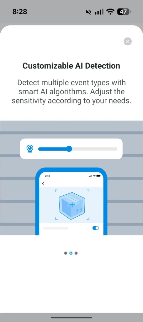 • Free Detection and Notification: Alerts for person, vehicle, pet and package.