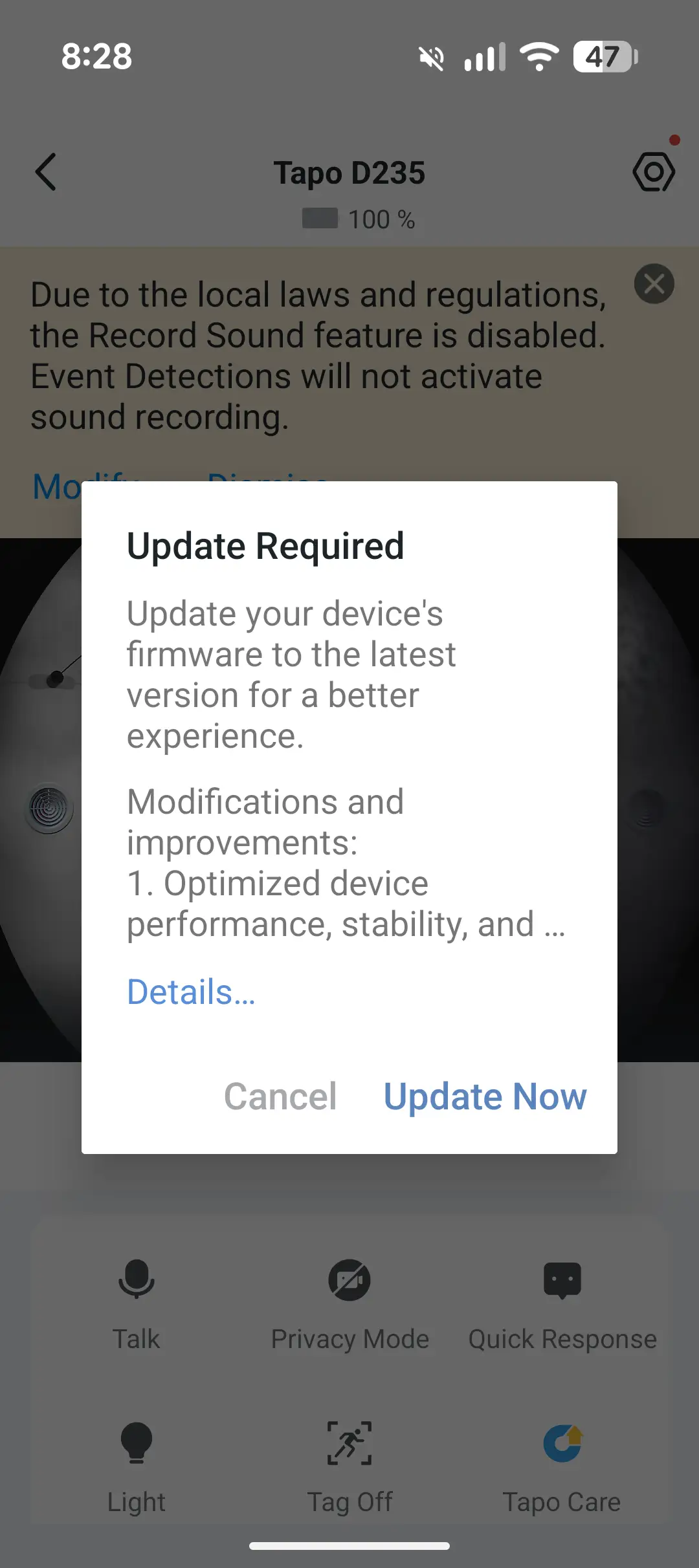 System Notification with Snapshot (Tapo Care Services)