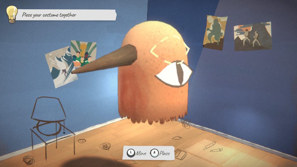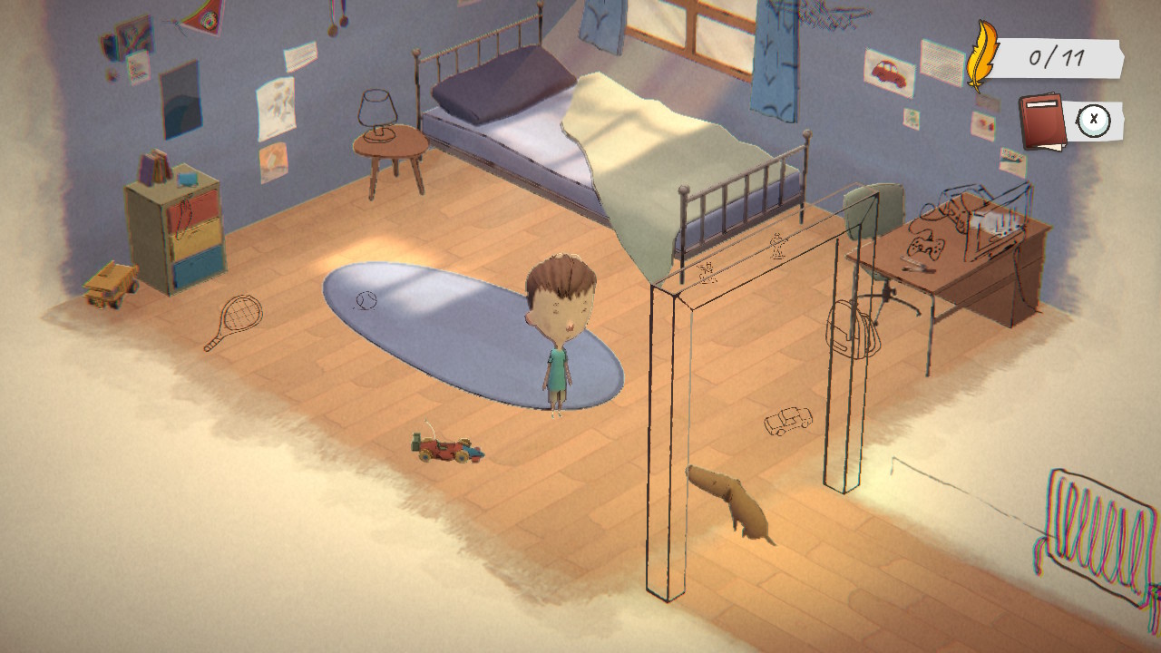 Visually, the game stands out with its art direction. The environments have a soft, dreamlike look, almost like watercolor illustrations that haven’t been fully filled in. Some objects appear as simple outlines, which gives everything a slightly unfinished, memory-like quality. It feels less like a fully grounded world and more like you’re stepping through a child’s recollection of one. The animation complements this style well, keeping movements smooth and expressive without overcomplicating things. The audio follows the same approach. The music is gentle and understated, matching the tone without ever pulling focus. There’s no voice acting, but the subtle sound effects, like interacting with objects or moving through spaces, carry a lightness that fits perfectly.