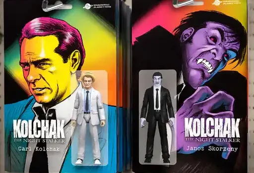 Fan-favorite indie toy company Wandering Planet Toys is partnering with publisher Monstrous to create the FIRST EVER officially licensed action figures of Kolchak and his notorious nemesis the vampire Janos Skorzeny. Since his 1972 debut, reporter CARL KOLCHAK has become one of the most enduring characters in weird fiction, starring in TV movies THE NIGHT STALKER and THE NIGHT STRANGLER as well as a beloved cult hit TV series. Now, from the novel that started it all, the famed paranormal investigator is making his figure debut as a deluxe, collectible 6-inch figure. Fans can support the figures on Kickstarter now!