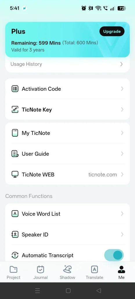 The TicNote application provides a translation function, and what is particularly interesting is the two-way conversation.