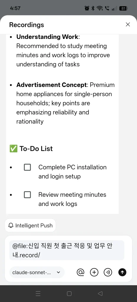 Not only was the recording strong, but the AI captured the Korean language with what appeared to be accuracy. Translation was possible with a prompt and, hilariously, as the theme was a business meeting in the TV show, it also created action items appropriate in context.