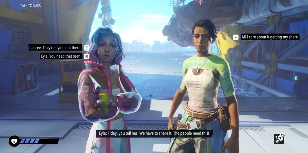 You’ll meet several characters and friends belonging to each faction, and all their stories will intersect with one another too. Tides of Tomorrow doesn’t tell a particularly deep or surprising story, but its themes of ecology, nature, and allegiance to your faction or family did manage to be compelling at times. I flip‑flopped between finding the game dull near the middle to being fully in for the ride by the end. Through a few heartfelt scenes and character moments, Tides managed to hook me a lot deeper into its story. And the moral dilemma at the core of your decisions was executed quite well too.