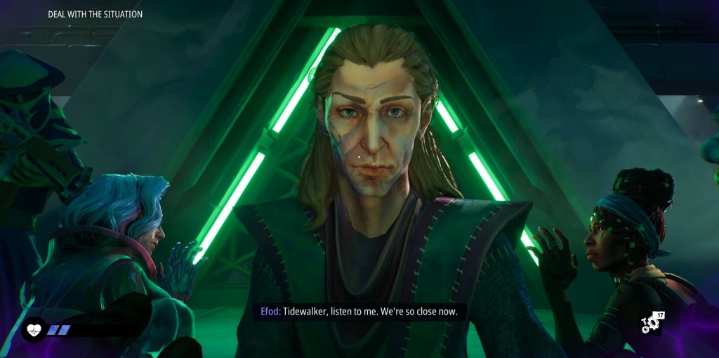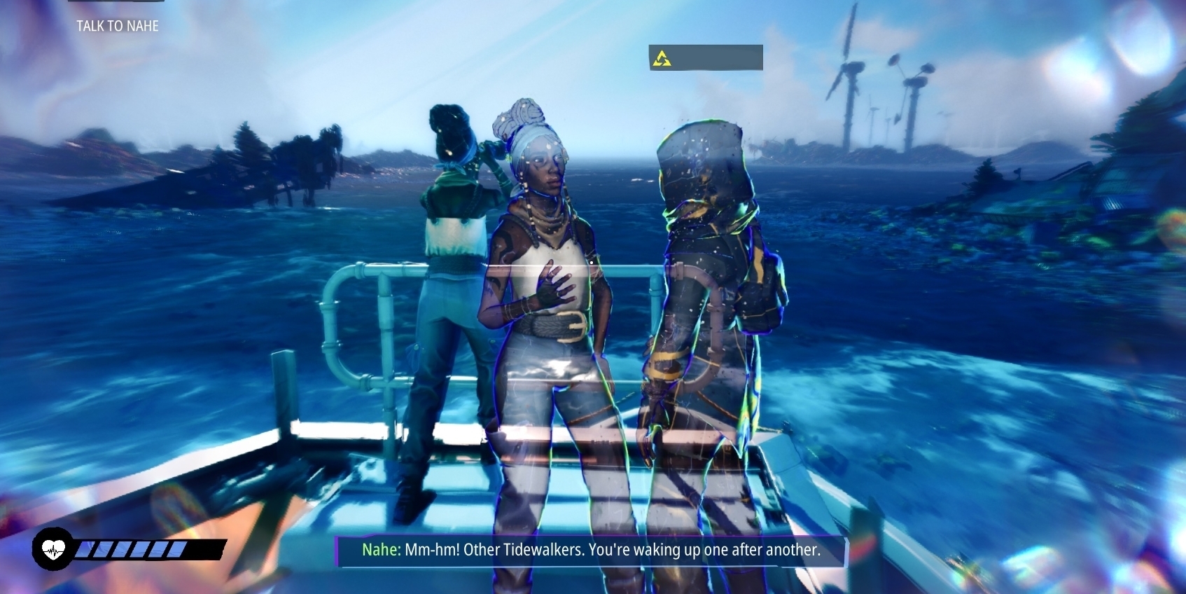 Tides of Tomorrow is at its best when the other playthrough affecting yours actually works. Especially when you’ve been following the same player for a while, noticing how they behave and act. At some point, you may be asked which choice a previous Tidewalker made; choose correctly and you’ll get a reward. The player I was following left hints in the form of emotes that I could see through my visions, leading me to that reward. When playthroughs intersect properly, and it feels like you’re communicating with other players, it feels like Tides succeeds at what it set out to innovate on.