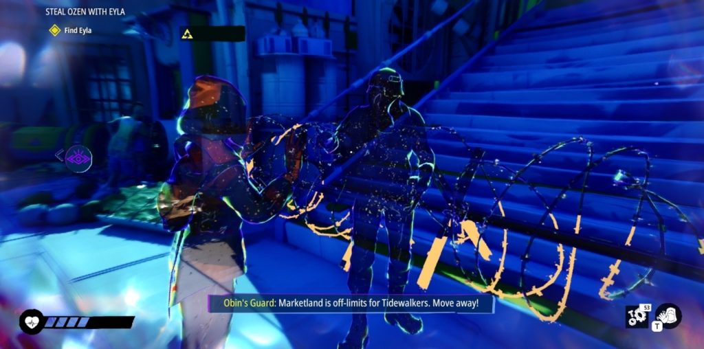 At the same time, Tides’ identity as a choice‑based game suffers from how the Story‑Link mechanic is executed. You are not able to play the game alone, being required to follow another player at the start. On top of that, all Tidewalkers get confused for one another, so you, the player, can lack an identity of your own. You could really screw over Marauder boss Obin on one island, go to the next level, and suddenly be best pals with him due to the state the previous Tidewalker left that level in.