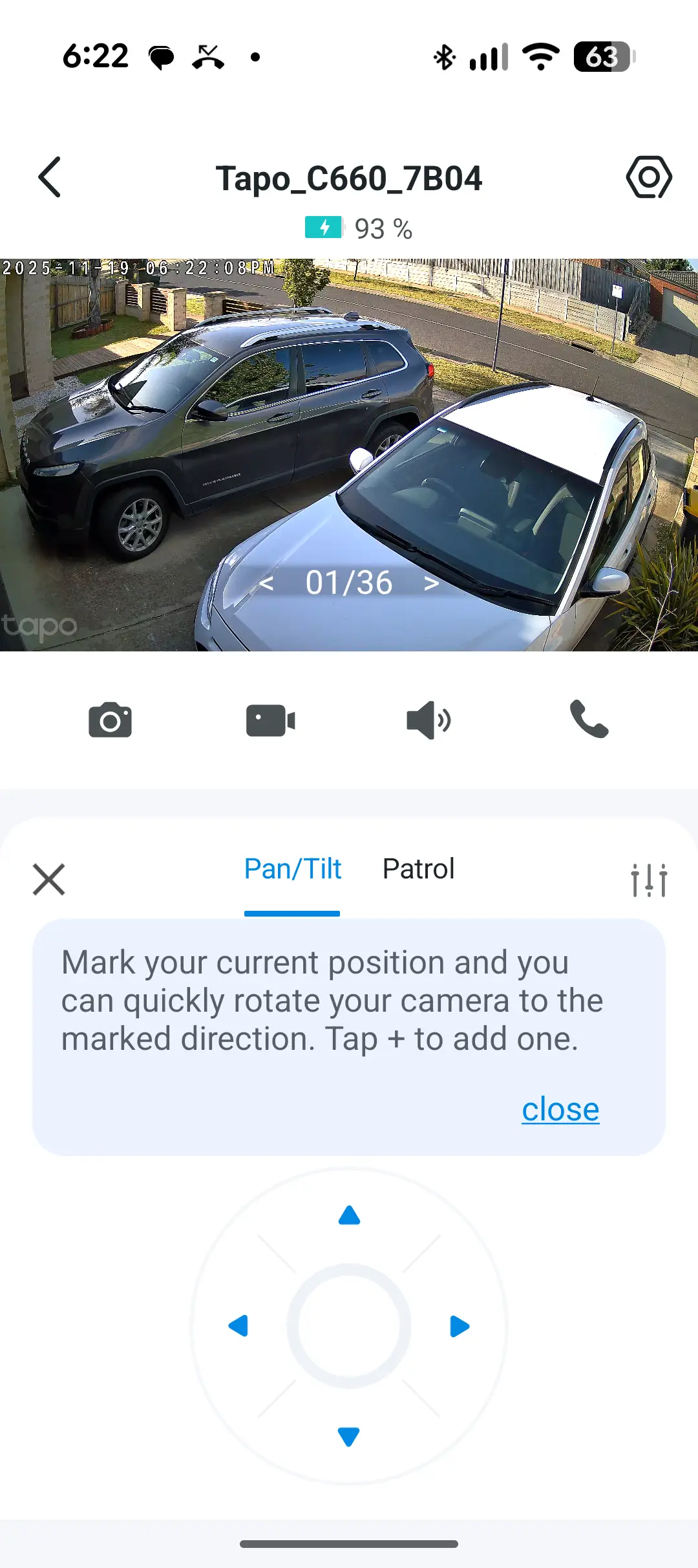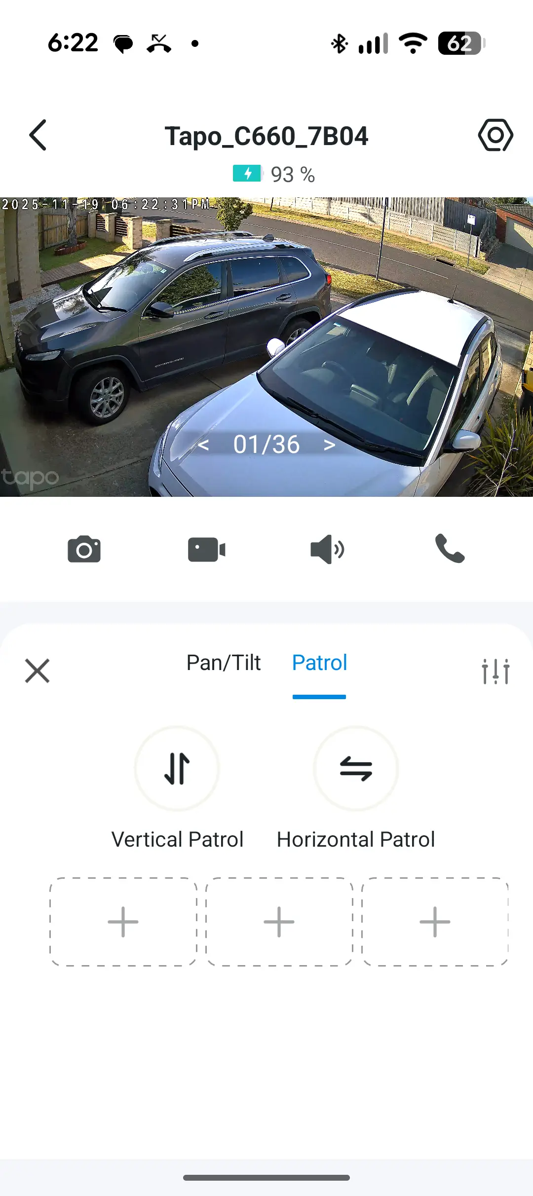 The live view via the app allows you to manually pan the camera up and down and a patrol mode can be activated to automatically scan your property. You can also set custom patrol presets, so the camera focuses on specific areas of interest, which is particularly useful for larger properties. In addition, the C660 supports AI auto‑tracking, automatically following moving subjects such as people or vehicles to keep them in frame.