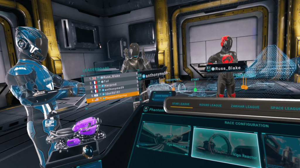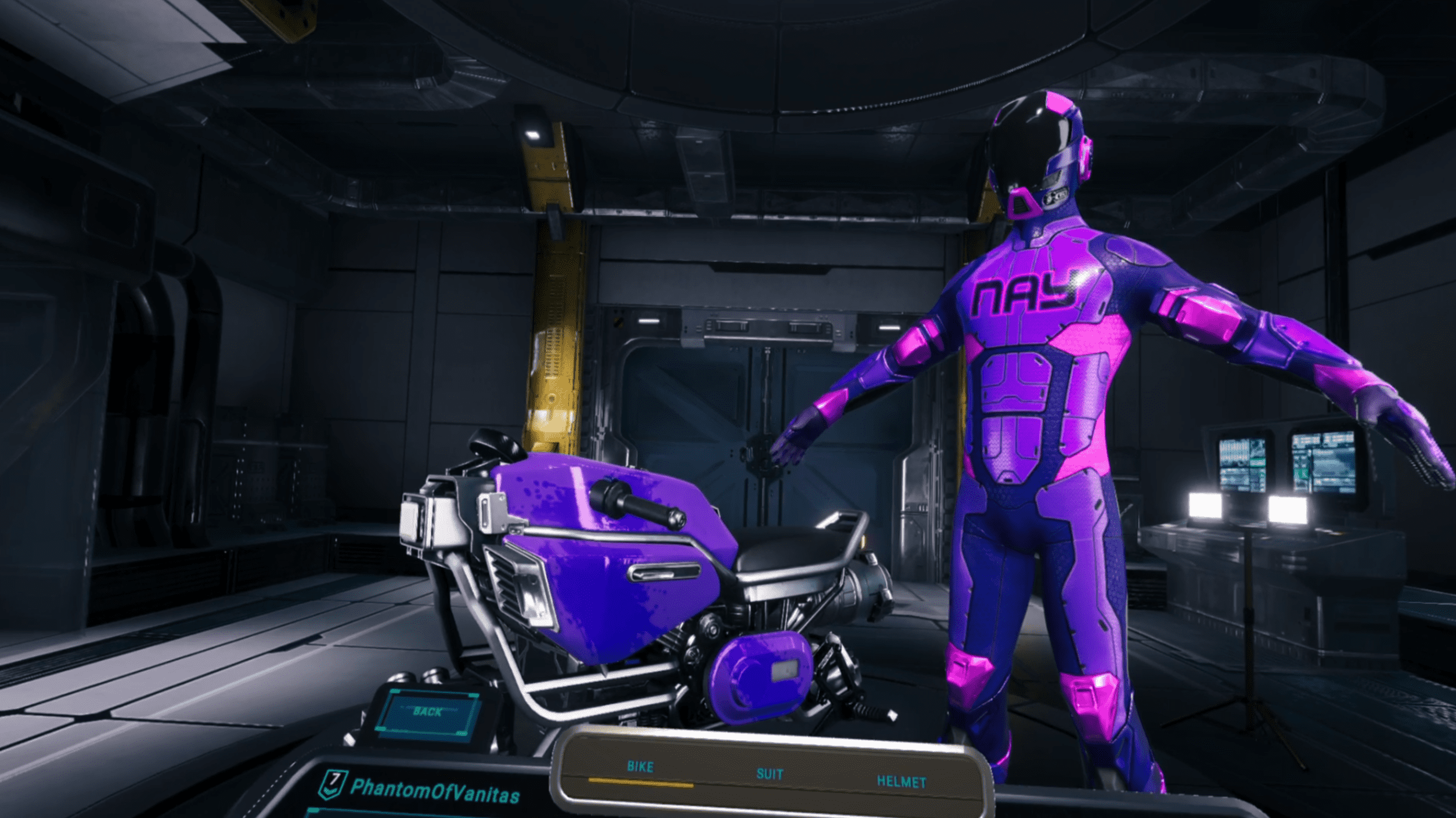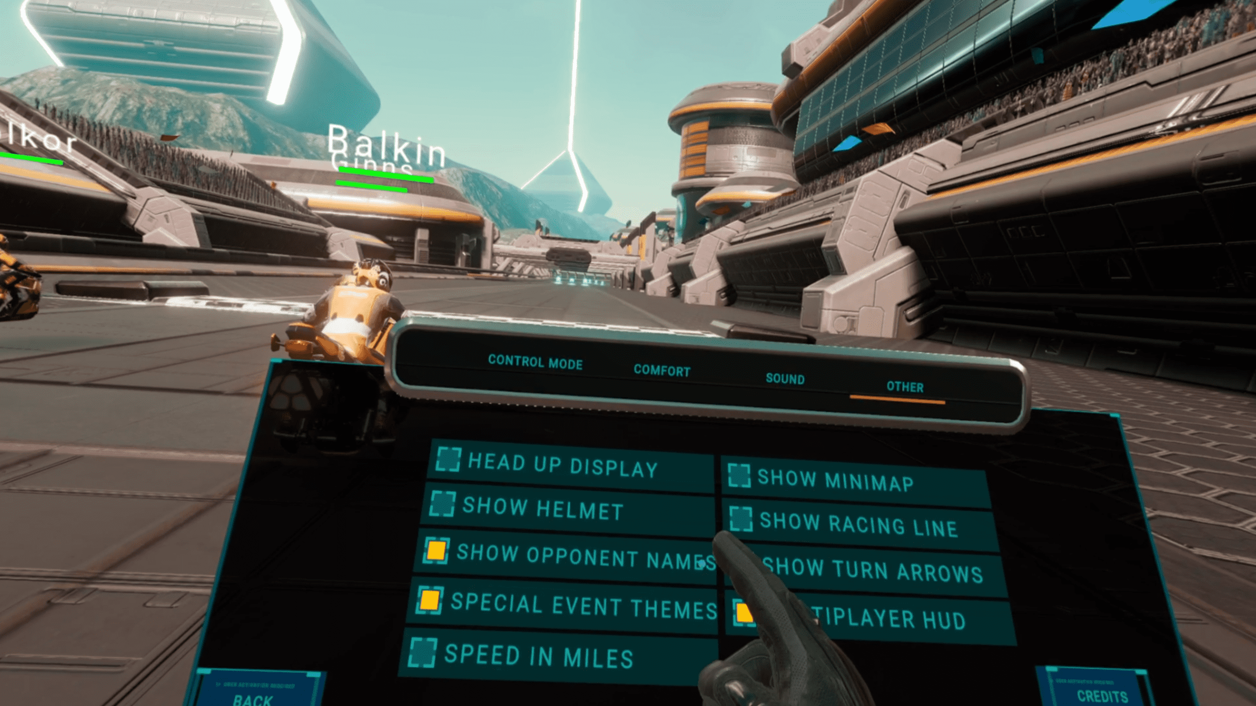 The career mode is the heart of V-Racer, guiding you through its championship structure across leagues like Onboarding, Ignition, Milky Way, and Starfield, with additional content planned. Progression is refreshingly direct: earn medals in events to collect points, reach ten points or win the cup, and you’re on to the next tier. The supporting modes, Quick Race, Multiplayer, and the rotating Online Challenges, round things out with variety. And for those looking to tailor the experience, the game allows you to toggle multiple assist elements on or off, such as helmet view, directional indicators, and braking guides. It’s a smart system because it lets newcomers ease in comfortably while giving veterans a clean, HUD-free ride that heightens immersion.