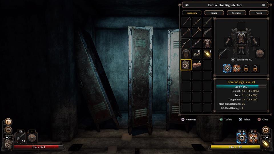 Before combat begins, you’re given the choice of three rigs, each focusing on a particular style of play. Combat; focusing on melee and ranged damage, with bonus in offense and defense on direct attacks. Thauma; specialising in gadget power, regeneration, cooldown speed and durations and Heavy; focusing on defense and health. As a beginner I chose to go with heavy to get the best defense early on in the game. As you level and progress you can still dabble in all three rig styles with various pieces of armors, these can grant you special bonus in any of the three combat styles, but the core of your focus will remain unchanged.