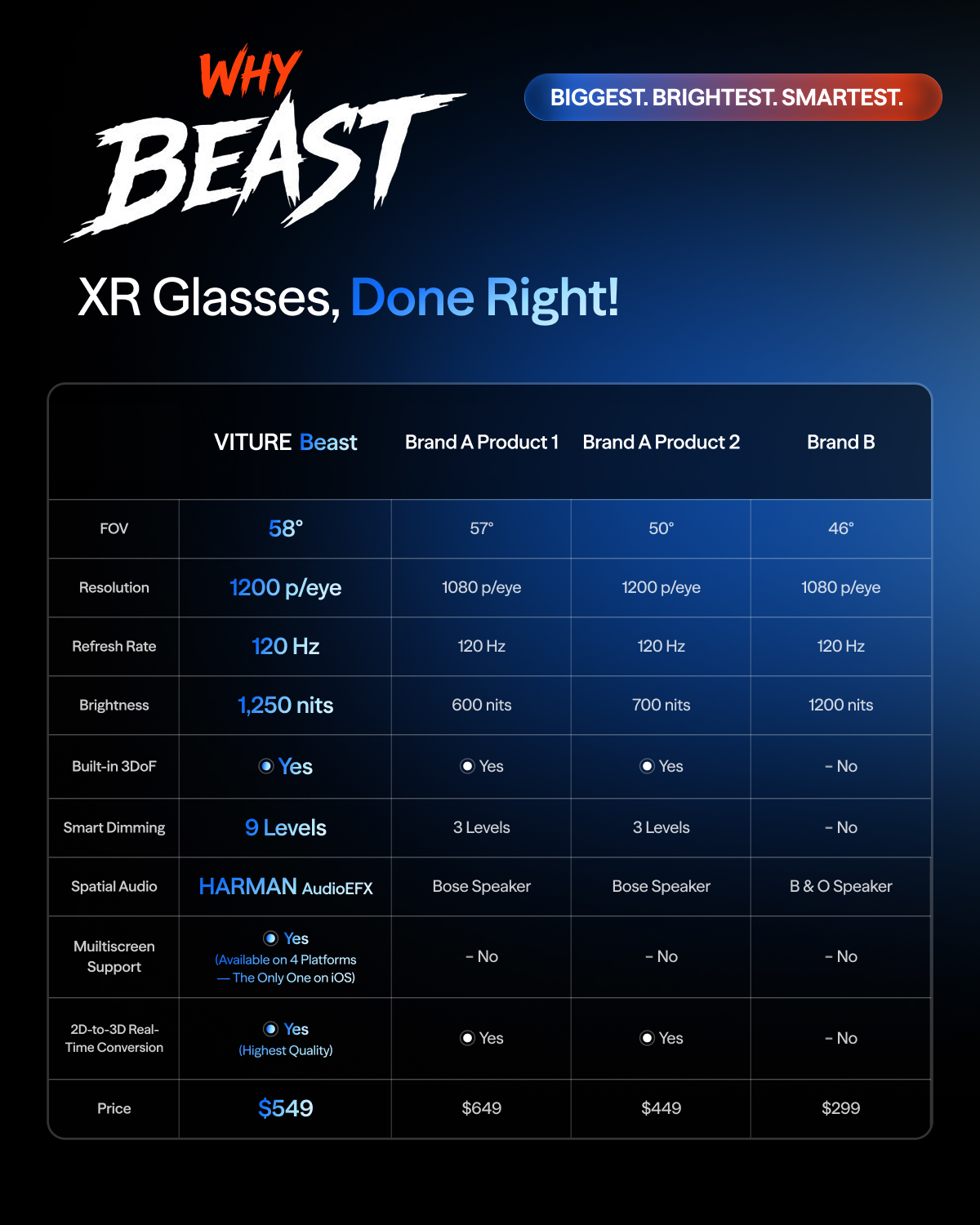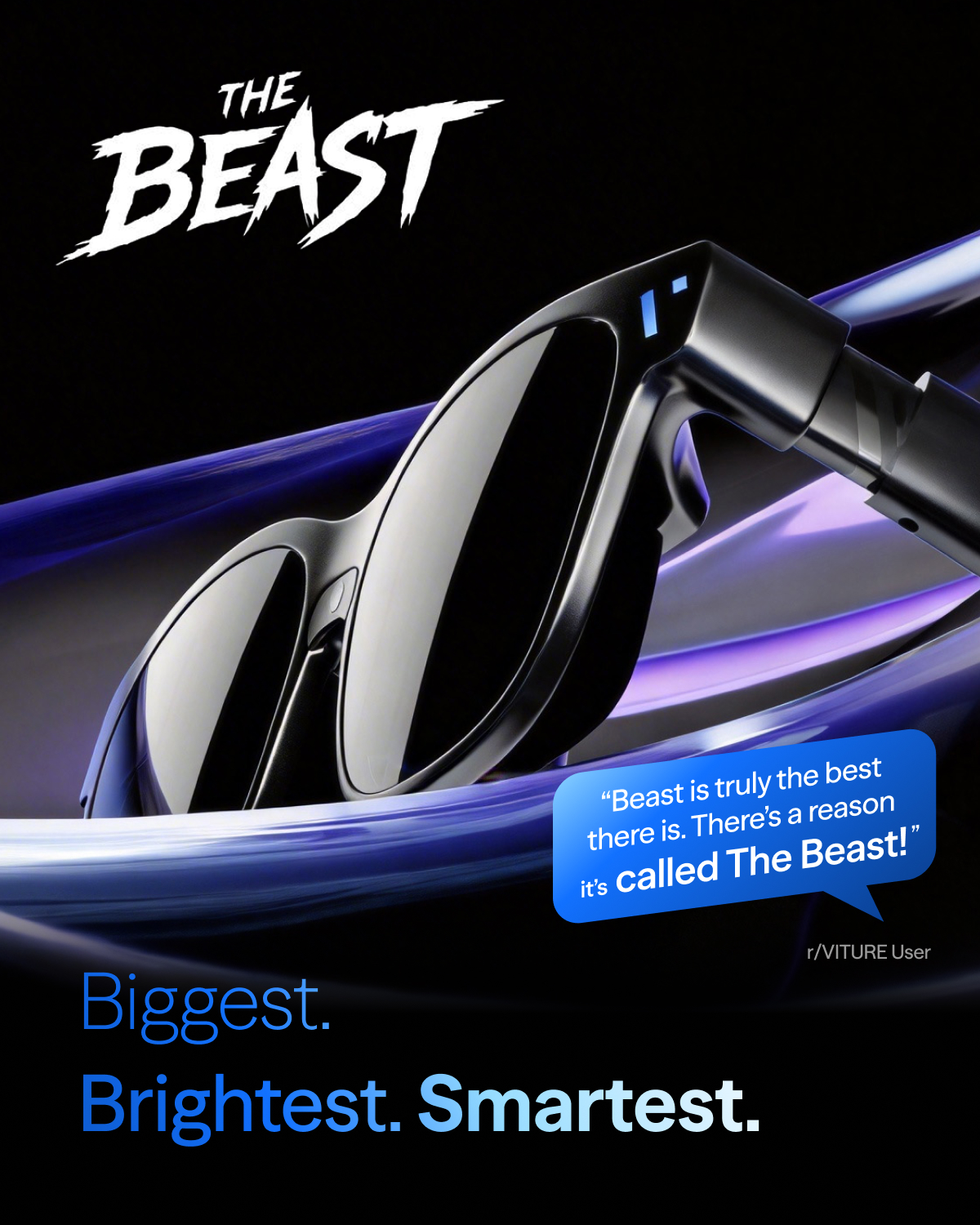 Summary: Meet VITURE Beast — the Biggest. Brightest. Smartest. 174” ultra-sharp display. 1250 nits brightness. Fully in control with 3DoF anchoring and versatile screen modes. Don’t just watch it—experience it. #VITURE #VITUREBeast