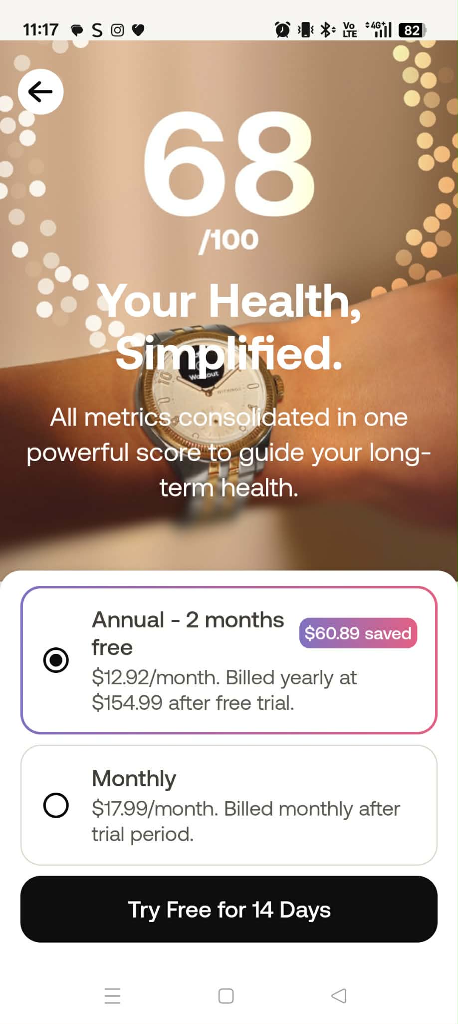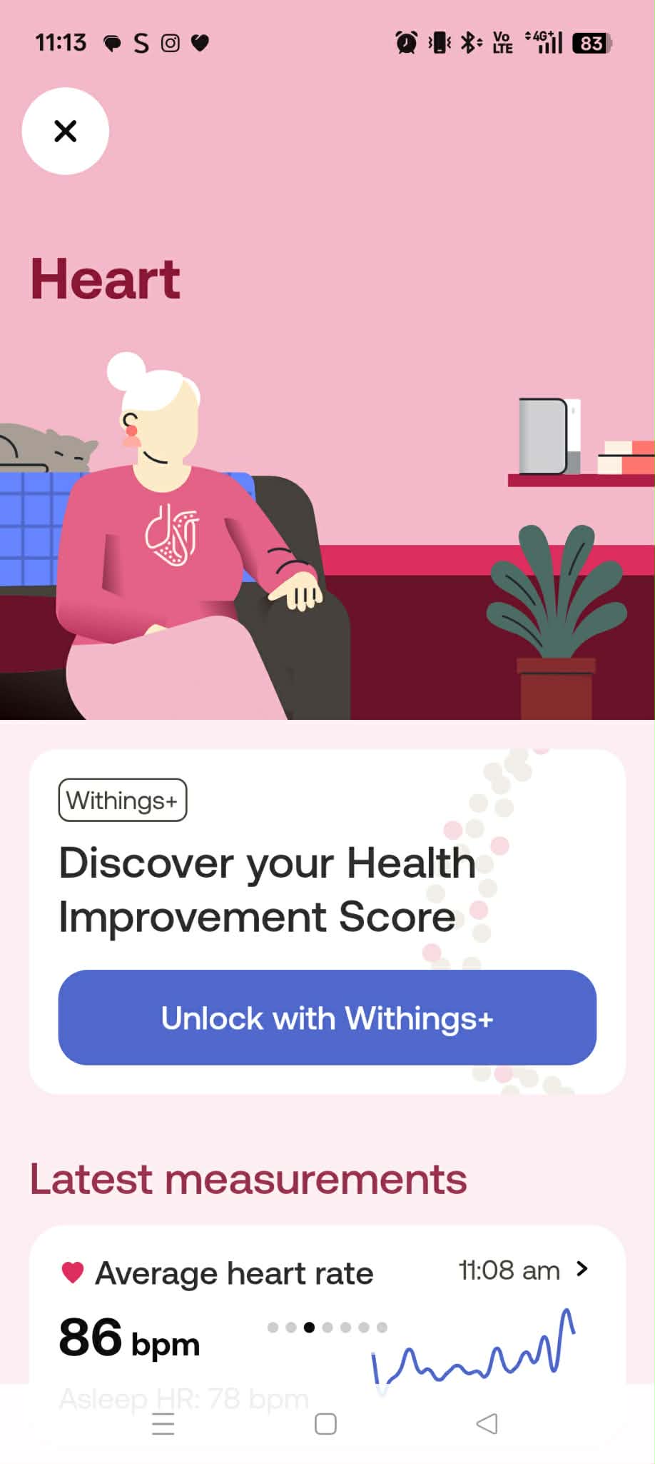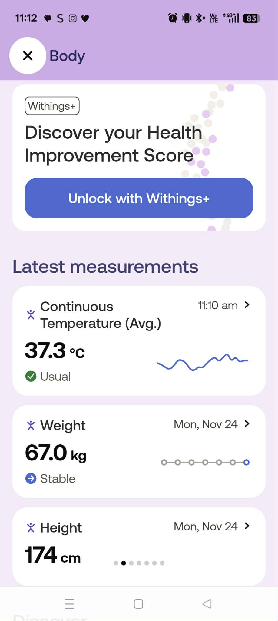 The watch syncs with the app to display a wide range of health metrics, including heart rate, resting heart rate, ECG readings, SpO₂ levels, breathing disturbances, sleep stages, sleep score, temperature trends, steps, distance, calories, elevation, VO₂ Max estimates and detailed workout data. All of these core measurements are fully accessible without paying for anything extra. The optional Withings+ subscription doesn’t unlock new sensors or tracking, but instead adds deeper analysis and personalised guidance—things like advanced sleep and cardiovascular insights, long‑term trend breakdowns, daily health “missions,” structured fitness and wellness programs, habit tracking and tailored coaching based on your data. In short, the free tier gives you all your health information, while Withings+ layers on interpretation, coaching and long‑term behavioural tools.