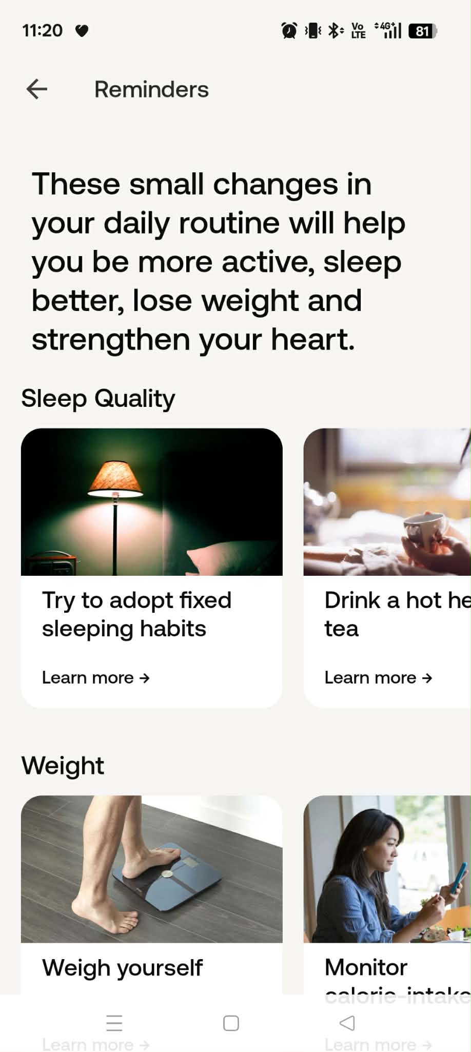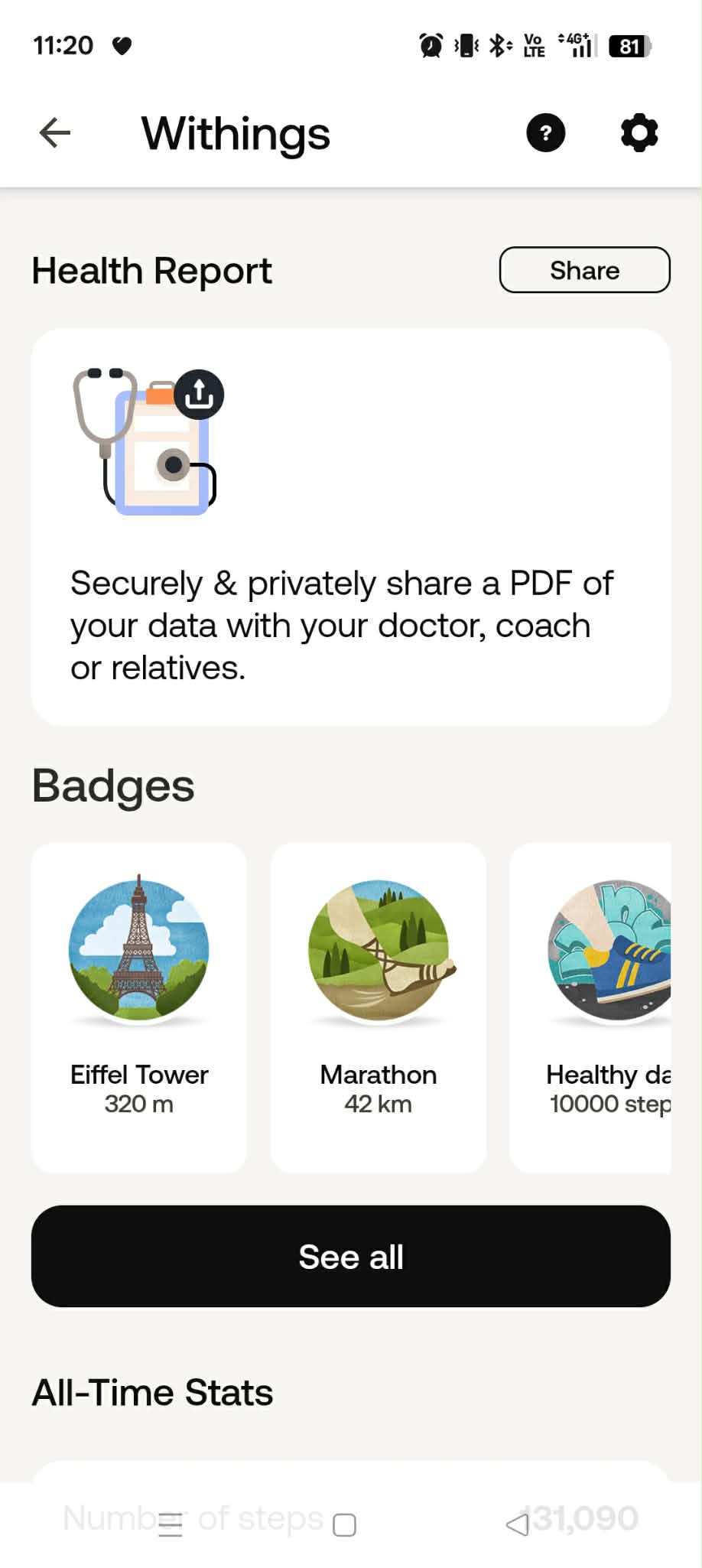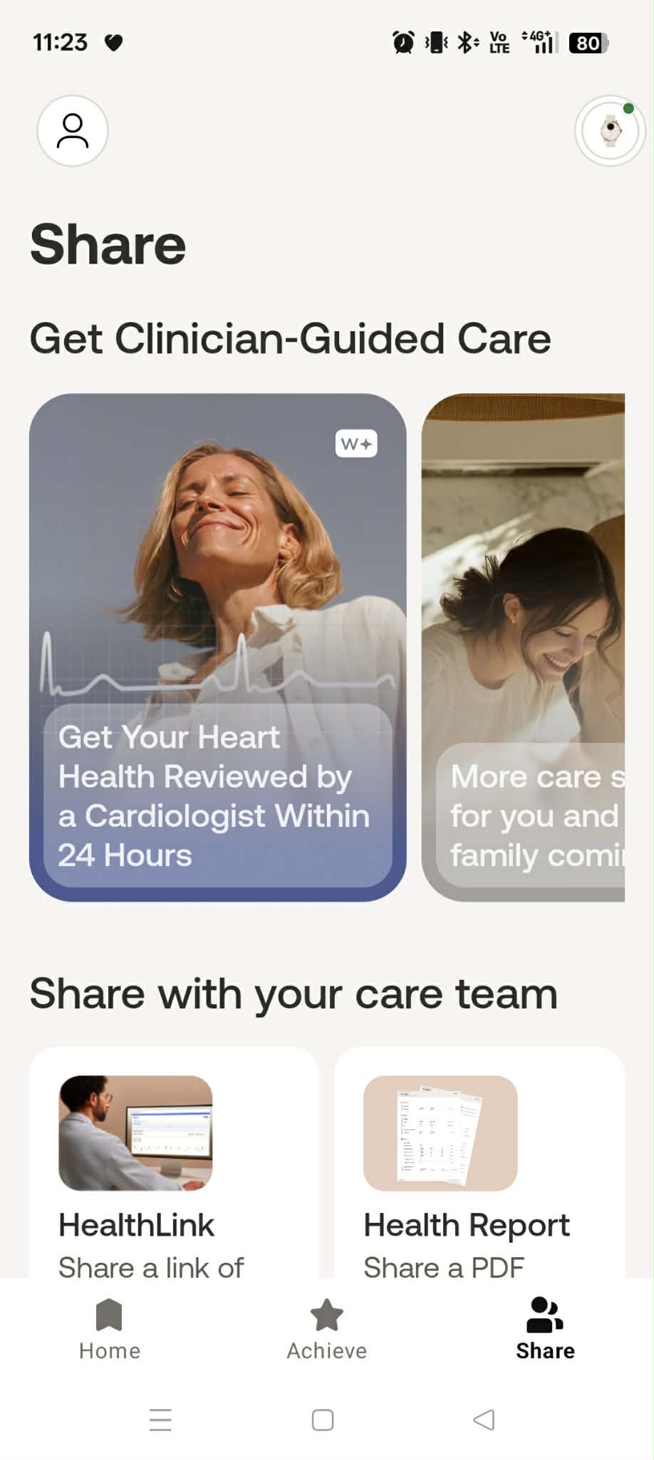 The watch syncs with the app to display a wide range of health metrics, including heart rate, resting heart rate, ECG readings, SpO₂ levels, breathing disturbances, sleep stages, sleep score, temperature trends, steps, distance, calories, elevation, VO₂ Max estimates and detailed workout data. All of these core measurements are fully accessible without paying for anything extra. The optional Withings+ subscription doesn’t unlock new sensors or tracking, but instead adds deeper analysis and personalised guidance—things like advanced sleep and cardiovascular insights, long‑term trend breakdowns, daily health “missions,” structured fitness and wellness programs, habit tracking and tailored coaching based on your data. In short, the free tier gives you all your health information, while Withings+ layers on interpretation, coaching and long‑term behavioural tools.