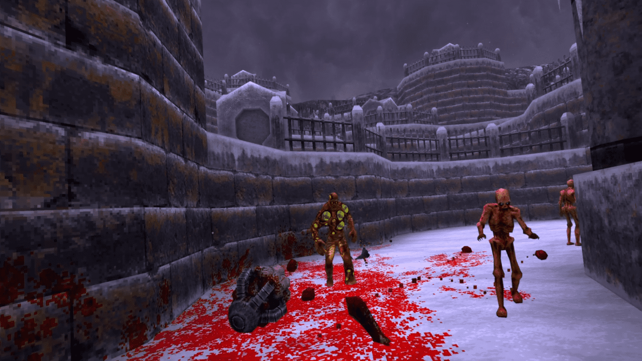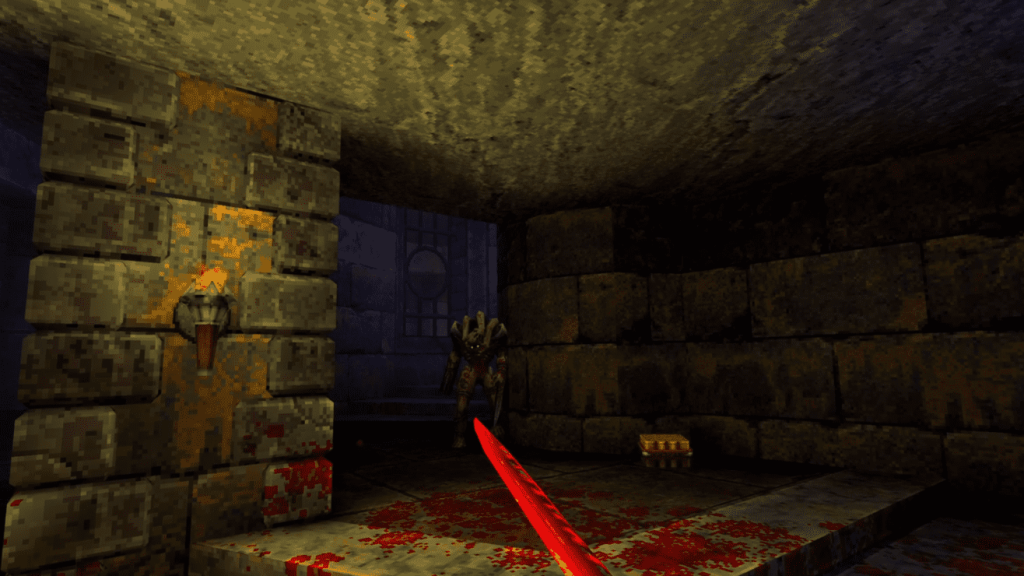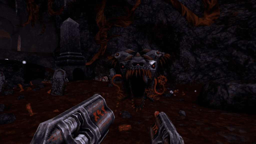 Visually, the game sticks to a deliberate retro style built on the Quake engine, with blocky geometry and stylized enemy designs. It’s clean, readable, and surprisingly immersive in VR. The environments themselves are varied, taking you through forests, snowy peaks, and ancient ruins buried in sand. Each area is packed with secrets, from hidden walls to tucked away switches, rewarding curiosity without ever feeling forced. Performance is smooth, which is crucial for a game this fast, and it helps keep the experience comfortable even during intense encounters.