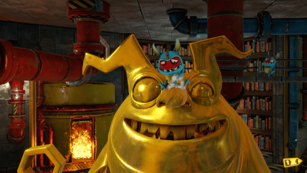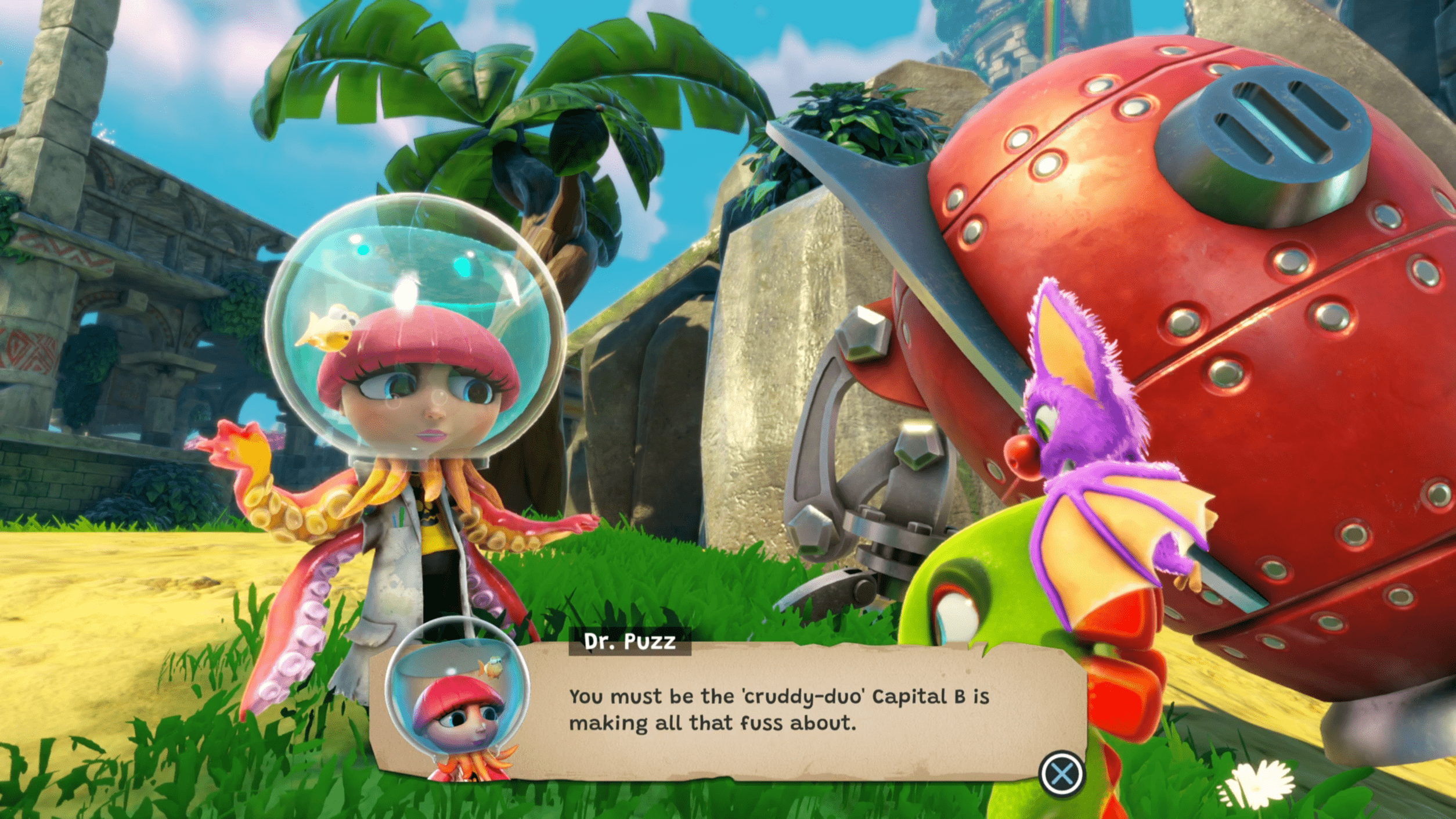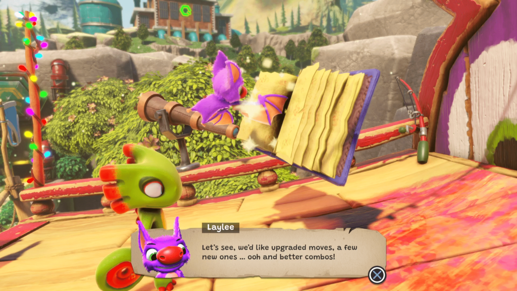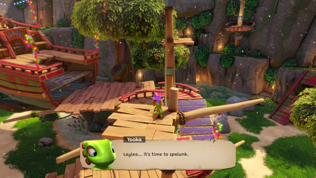 While the main plot beats remain familiar, Yooka-Re-Playlee improves the storytelling flow through snappier pacing, more frequent cutscenes, and a better-defined cast. One Book now has a speaking role and both villains are more active throughout, giving the adventure a stronger sense of purpose. The tone remains light and kid-friendly, punctuated by slapstick humor, including a well-timed fart joke early on that sets the game’s goofy spirit. Yet, under the silliness lies a gentle environmental theme and a message about teamwork and persistence. The added context and polish make this retelling feel both fresher and more engaging, even if some of the original’s quirky charm gets softened in the process.
